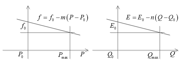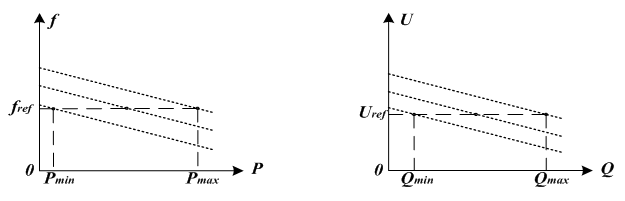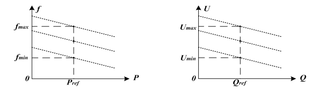圖2-1表明,在頻率、電壓變化范圍(fmin<f<fmax,Umin<U<Umax)PQ控制可以穩(wěn)定有功、無功輸出。
