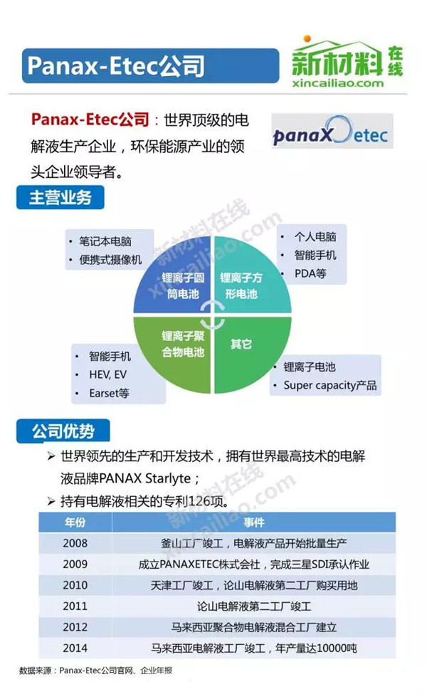 中國儲能網訊:電解液的總成本占鋰離子電池的成本的比例約為5%-15%。我們知道,常規(guī)的鋰離子電池采用的都是非水有機溶劑,當電池由于內部短路而發(fā)熱時,電解液受熱分解產生氣體,輕則電池膨脹,重則導致電池爆炸。今天小編就為你盤點一下全球鋰離子電池電解液知名企業(yè)。