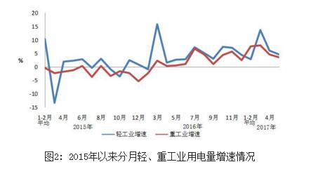 5月份,全國工業(yè)用電量3600億千瓦時,同比增長3.8%,占全社會用電量的比重為72.5%。其中,輕工業(yè)用電量622億千瓦時,同比增長4.7%,占全社會用電量的比重為12.5%;重工業(yè)用電量2978億千瓦時,同比增長3.6%,占全社會用電量的比重為60.0%。