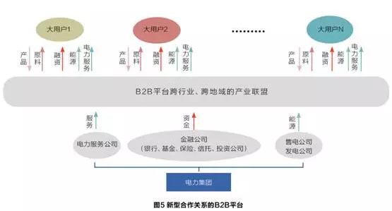 通過建立B2B平臺,將能源、金融、產(chǎn)品、服務(wù)以及大數(shù)據(jù)等全面產(chǎn)業(yè)信息及供需渠道進行了融合,為電力集團和大用戶建立綜合的供需渠道,推動各方產(chǎn)業(yè)健康發(fā)展,形成互聯(lián)互通的生態(tài)系統(tǒng)。(見圖5)