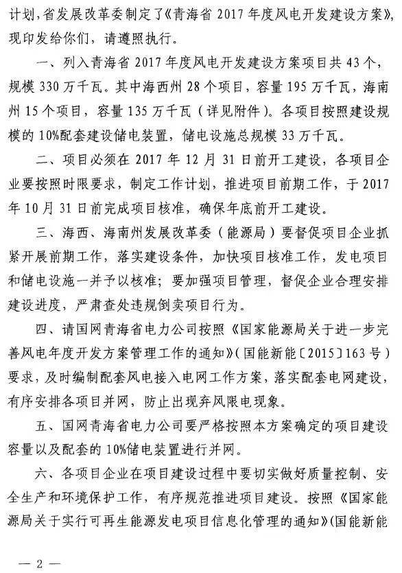青海此次配置的43個(gè)、總計(jì)3.3GW的風(fēng)電項(xiàng)目分別位于海西州(28個(gè)、1.95GW)和海南州(15個(gè)、1.35GW)。這些項(xiàng)目被要求在2017年10月底前完成核準(zhǔn),年底前開工建設(shè)。建成并網(wǎng)時(shí),國(guó)網(wǎng)青海電力公司將嚴(yán)格要求配套的10%儲(chǔ)電裝置進(jìn)行并網(wǎng)。