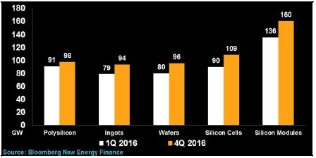 5、2017年展望:太陽(yáng)能持續(xù)供過(guò)于求制約了價(jià)格上漲