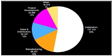 2016年美國(guó)太陽(yáng)能行業(yè)就業(yè)分布圖