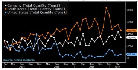美國(guó)制造商Suniva運(yùn)用1974年貿(mào)易法中的“201條款”提起貿(mào)易申訴,指控美國(guó)進(jìn)口的硅基太陽(yáng)能電池板對(duì)其造成巨大受害。這一貿(mào)易案可能被美國(guó)政府利用,幫助緩解中國(guó)對(duì)進(jìn)口美國(guó)供應(yīng)多晶硅的限制。如果美國(guó)國(guó)際貿(mào)易委員會(huì)判定Suniva的申訴有法律效力,特朗普就會(huì)決定拿出何種最終行動(dòng)。中國(guó)對(duì)進(jìn)口美國(guó)多晶硅的關(guān)稅壓制了REC Silicon和Hemlock Semiconductor等美國(guó)多晶硅供應(yīng)商的需求。