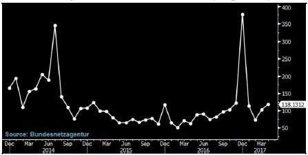 歐洲國(guó)家削減補(bǔ)貼正在使2017年太陽(yáng)能裝機(jī)增長(zhǎng)放緩。2011年達(dá)到巔峰后,德國(guó)一直在降低稅收支持,并讓地面安裝項(xiàng)目轉(zhuǎn)向發(fā)電容量拍賣(mài),由此降低了公用事業(yè)用太陽(yáng)能的成本。剛剛走馬上任的法國(guó)總統(tǒng)埃曼努爾?馬克龍可能延續(xù)當(dāng)前的政策支持。英國(guó)的政策激勵(lì)將進(jìn)一步向離岸風(fēng)能傾斜,該領(lǐng)域正在表現(xiàn)出降低能源成本方面的進(jìn)展。