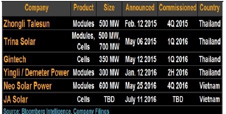 越南和泰國(guó)新開(kāi)的太陽(yáng)能模塊組件/電池生產(chǎn)廠