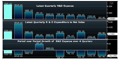 太陽(yáng)能行業(yè)各家公司的研發(fā)支出
