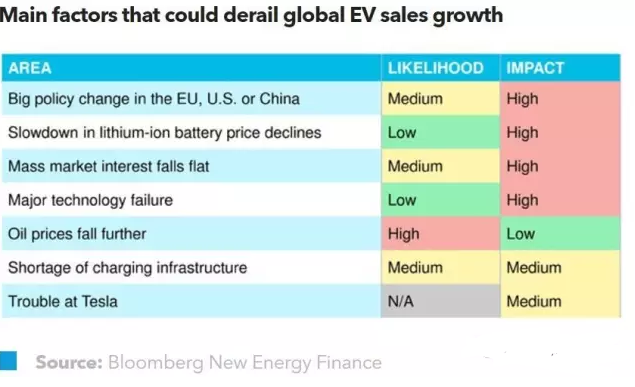 歐盟、美國(guó)、中國(guó)的主要政策變化是全球電動(dòng)汽車行業(yè)面臨的最大威脅。目前,全球電動(dòng)汽車市場(chǎng)仍嚴(yán)重依賴政策支持。在此背景下,只要全球超過2個(gè)主要市場(chǎng)的政策環(huán)境同時(shí)發(fā)生改變,電動(dòng)汽車的銷售增長(zhǎng)可能會(huì)受到嚴(yán)重影響。