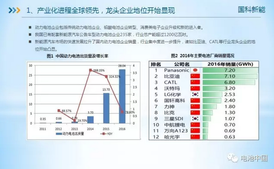 第一,我國(guó)動(dòng)力電池產(chǎn)業(yè)化的進(jìn)程全球領(lǐng)先,龍頭企業(yè)的地位已經(jīng)開始顯現(xiàn)。