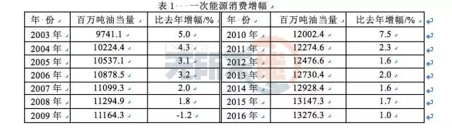 能源消費始終是伴隨經(jīng)濟發(fā)展的,當前全球經(jīng)濟不景氣,2016年全球一次能源消費僅增加了1.0%,遠低于2010年增長7.5%的水平。除了2009年全球經(jīng)濟衰退為-1.2%以外,2014~2016年是從1998年來全球經(jīng)濟增長的最低年份,全球一次能源消費也隨之減少,到2016年僅微增1.0%,見表1。