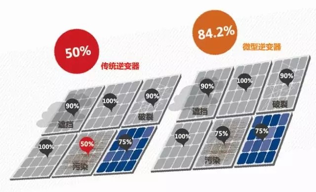 從系統(tǒng)本身考慮,多路MPPT的實現將可降低陰影遮擋的影響。例如,微型逆變器光伏系統(tǒng)為全并聯設計電路,每塊組件都具有獨立MPPT,可以實現最大功率輸出,使得陰影、灰塵、樹葉對電池板的部分遮擋,不再有短板效應,消除了組件遮擋、朝向和角度不同而造成的失配問題,大大提高了發(fā)電量。