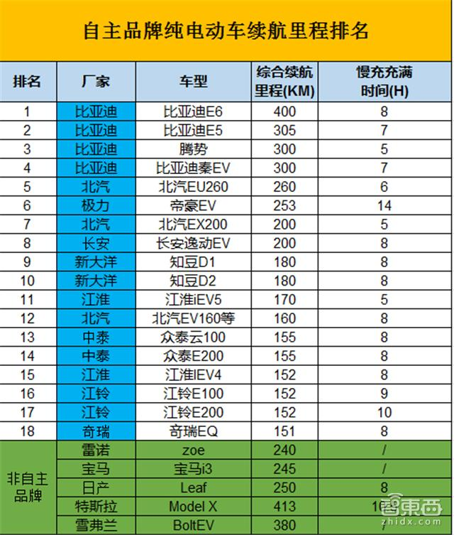 *國內(nèi)自主品牌純電動汽車?yán)m(xù)航里程排名(援引知乎xinhe sun)