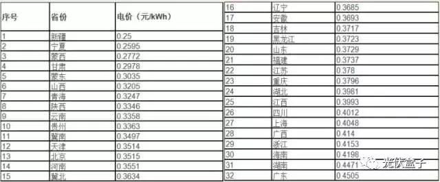 圖2:全國光伏發(fā)電標(biāo)桿上網(wǎng)電價(jià)表