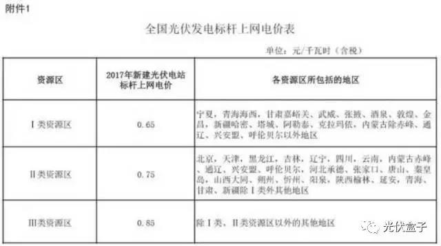 注意:以上價(jià)格針對(duì)在2017年6月30日之后并網(wǎng)的光伏電站,自發(fā)自用余額上網(wǎng)的分布式還是0.42元/度。