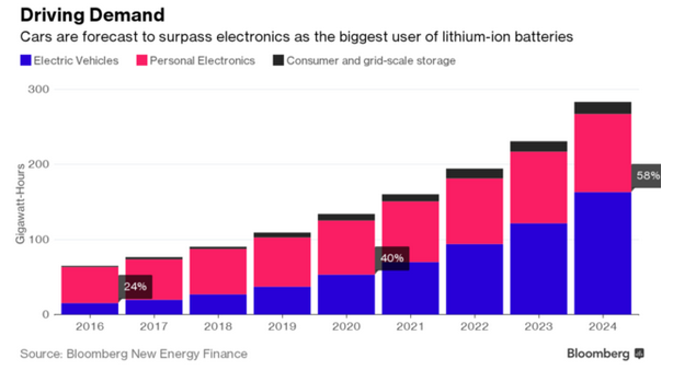 長期以來,鋰離子電池一直被用于智能手機(jī)、筆記本電腦和其他個人電子產(chǎn)品。但隨著電動車的普及,以及電力公司安裝巨型存儲系統(tǒng)來平穩(wěn)風(fēng)能和太陽能發(fā)電產(chǎn)生的電壓波動,預(yù)計未來5年內(nèi)鋰離子電池的需求將會激增。