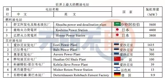 表中油頁巖電站所使用的燃料不是頁巖油,而是油頁巖。