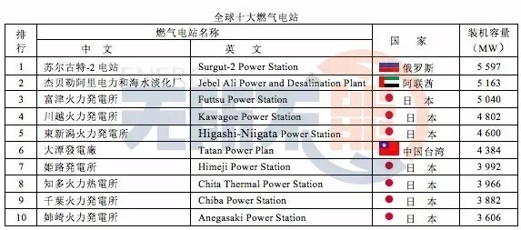 燃?xì)獍l(fā)電最多的國家是日本,但最大的燃?xì)怆娬臼嵌砹_斯蘇爾古特-2電站,裝機(jī)容量達(dá)5597MW。