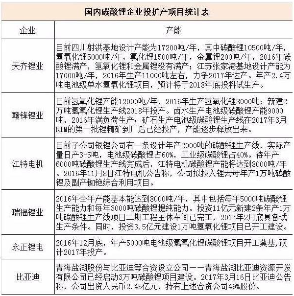 另附鋰漲價受益的碳酸鋰擴大產(chǎn)能企業(yè)