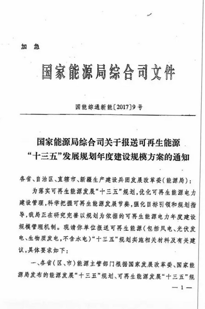 然而,5月10日國家能源局綜合司下發(fā)《關(guān)于報送可再生能源“十三五”發(fā)展規(guī)劃年度建設(shè)規(guī)模方案的通知》中,提出: