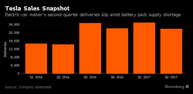據(jù)彭博社報道,今年第二季度電動汽車制造商特斯拉的銷售量為22000輛普通轎車以及SUV,而今年第一季度這一數(shù)字是25051輛。此前特斯拉曾透露,公司今年上半年的最低銷售預(yù)期是47000-50000輛汽車。