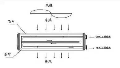 空氣散熱器又名空冷器、風冷器,是用空氣進行冷卻的熱交換裝置。小型空冷器由翅片管束,構架,風機三個基本部分組成??绽淦骼脛恿语L機葉輪轉動,產生的渦流不斷將空氣吸入,冷空氣與換熱翅片接觸后傳遞熱量,將管內的介質冷卻,使介質達到出口設計的溫度。