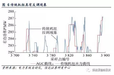 傳統(tǒng)機(jī)組由于響應(yīng)慢,不能及時(shí)跟隨AGC信號(hào),當(dāng)AGC信號(hào)下發(fā)指令的功率變化方向與機(jī)組當(dāng)前實(shí)際功率變化方向相反時(shí),機(jī)組無(wú)法快速轉(zhuǎn)變功率方向,因此會(huì)產(chǎn)生一段時(shí)間的反方向調(diào)節(jié),這稱為反調(diào)現(xiàn)象。相較之下,電池儲(chǔ)能系統(tǒng)因?yàn)轫憫?yīng)快,能雙向調(diào)節(jié),因此沒(méi)有反調(diào)現(xiàn)象。但是由于國(guó)內(nèi)的調(diào)頻輔助服務(wù)政策中并沒(méi)有把儲(chǔ)能系統(tǒng)作為一個(gè)獨(dú)立電源讓其參與到市場(chǎng)中,因此儲(chǔ)能在輔助服務(wù)市場(chǎng)中地位尷尬,以調(diào)頻為例,目前采用的方法是儲(chǔ)能和火電機(jī)組聯(lián)合調(diào)頻的模式,利用儲(chǔ)能的快速響應(yīng)和快速調(diào)節(jié)能力來(lái)提升系統(tǒng)總體的調(diào)頻效果。