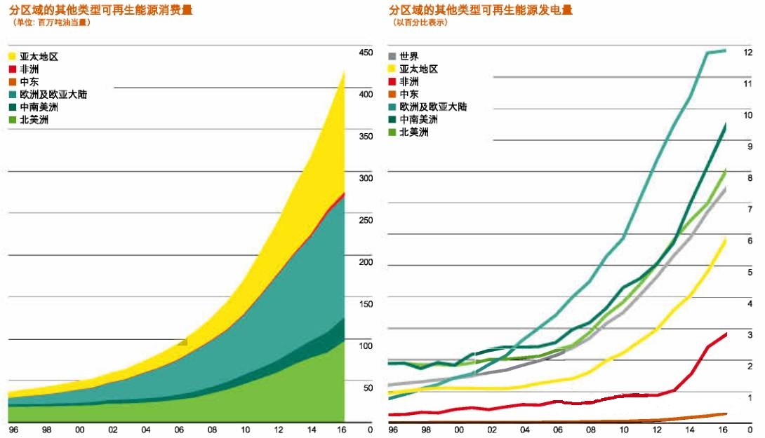 2016年,中國超越美國成為世界最大的可再生能源生產(chǎn)國,而亞太地區(qū)則超越歐洲和歐亞大陸成為可再生電力最大的生產(chǎn)地區(qū)。