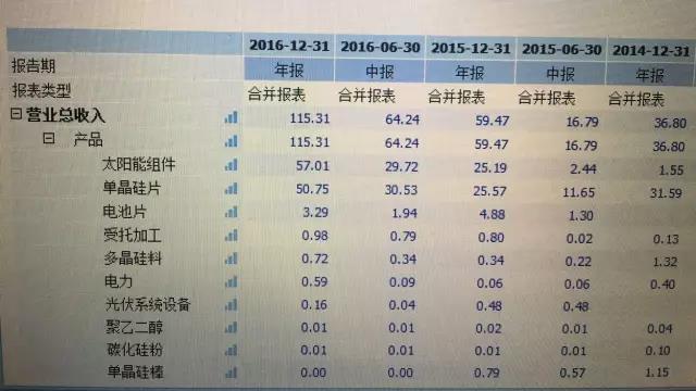 從產(chǎn)品類(lèi)型來(lái)看,公司的單晶硅片在同期上升,但組件也已成為核心收入來(lái)源。2014年,單晶組件還僅僅只有1.55億元的進(jìn)賬,2年之后,收入突飛猛進(jìn),達(dá)到了57.01億元,已占據(jù)了公司年?duì)I收的一半。這部分的收入,大量來(lái)自于樂(lè)葉。