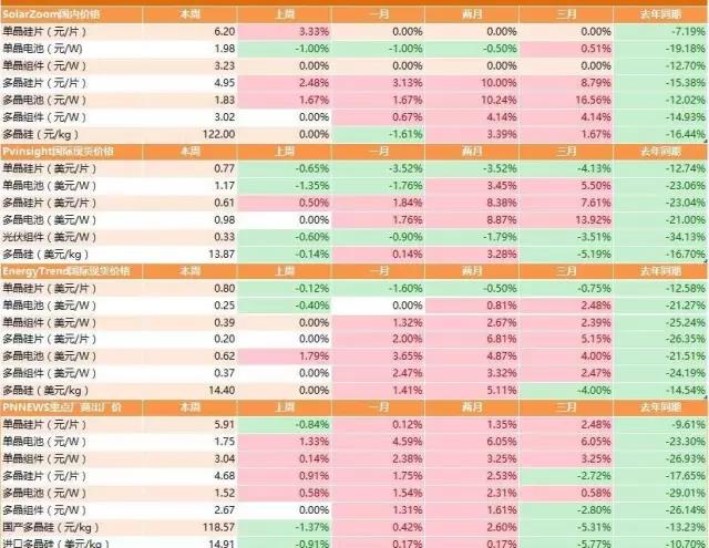 需要注意的是,隆基的單晶硅片售價(jià),年度同比雖有所下降,但降幅是所有產(chǎn)品中最少的。隨著“630”搶裝潮的結(jié)束,整體光伏需求可能會(huì)有所下滑,單晶硅及組件價(jià)也有繼續(xù)下探的可能性,這也對(duì)企業(yè)的降本增效提出了更高的要求。下圖的四個(gè)渠道統(tǒng)計(jì)數(shù)據(jù)顯示,單晶硅片同比分別降幅在7%、12.74%和12.58%。相對(duì)而言,組件的降幅更明顯,PVinsight的數(shù)據(jù)中提到,組件有34%的年降幅。