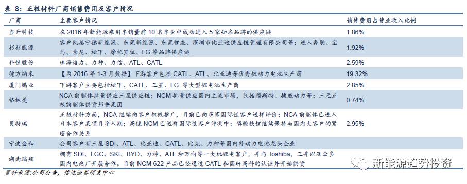 動(dòng)力電池龍頭集中趨勢(shì)開始顯現(xiàn),擁有優(yōu)質(zhì)下游客戶的正極材料廠商將有更加穩(wěn)定的銷售渠道,因此各個(gè)正極材料廠商不斷加快與電池龍頭的合作步伐。