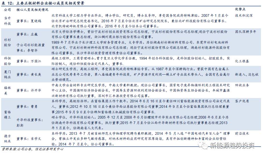 綜上所述,隨著汽車電動(dòng)化的深入發(fā)展,高端三元材料需求持續(xù)提升,我們從產(chǎn)業(yè)鏈、研發(fā)等角度分析,主板上市公司建議關(guān)注:
