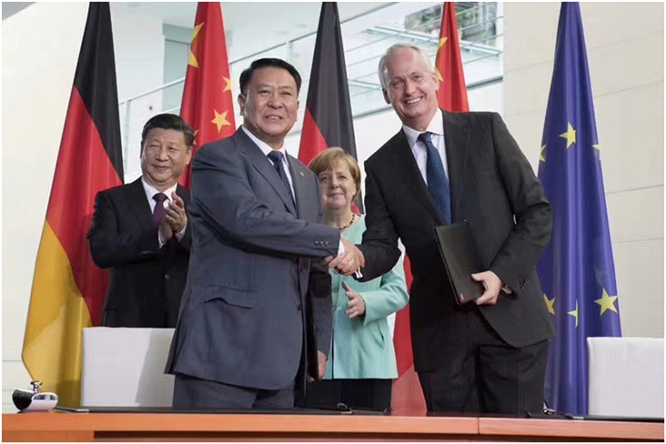 7月5日,在中國國家主席習近平與德國總理默克爾的共同見證下,北汽集團與戴姆勒簽署了新的框架協(xié)議。北汽集團董事長徐和誼和戴姆勒股份公司董事會成員、負責中國業(yè)務的唐仕凱(Hubertus Troska)出席了在德國柏林舉行的簽約儀式。雙方表示,將共同投資50億元人民幣,引入梅賽德斯-奔馳品牌的純電動汽車產品,在北京奔馳建立純電動汽車生產基地及動力電池工廠。
