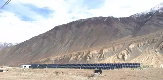 其中,庫地檢查站的供電建設(shè)根據(jù)實(shí)地勘察,最終確定采用風(fēng)光互補(bǔ)供電、柴油機(jī)發(fā)電備用的供電方式,包含450KW的光伏電站,20KW的風(fēng)機(jī)機(jī)組,以及250KW的柴油機(jī)。成功通電后,成為中國邊防的第一大風(fēng)光柴互補(bǔ)電站。