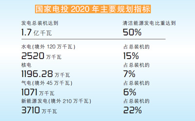 記者注意到,報(bào)告還明確了國(guó)家電投“十三五”電力發(fā)展主要規(guī)劃指標(biāo),即到2020年,該集團(tuán)發(fā)電總裝機(jī)達(dá)到1.7億千瓦,清潔能源發(fā)電比重達(dá)到50%。其中,水電2520萬(wàn)千瓦(占總裝機(jī)15%)、核電1196.28萬(wàn)千瓦(占總裝機(jī)7%)、氣電1071萬(wàn)千萬(wàn)(占總裝機(jī)6%)、新能源發(fā)電3710萬(wàn)千瓦(占總裝機(jī)22%)。