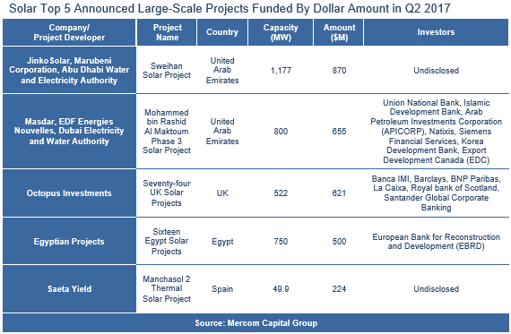 其中,二季度,太陽能企業(yè)融資規(guī)模從一季度的32億美元驟降至14億美元,交易數(shù)量也從60降至37,去年二季度為17億美元,同比下降17%。