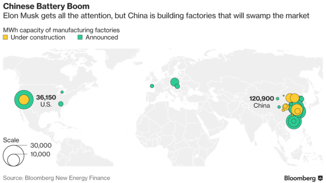 彭博新能源財經(jīng)還預測,中國在全球鋰離子電池的市場優(yōu)勢將會不斷強化,2017年市場份額將達到55%,2021年將達到全球市場份額的65%。