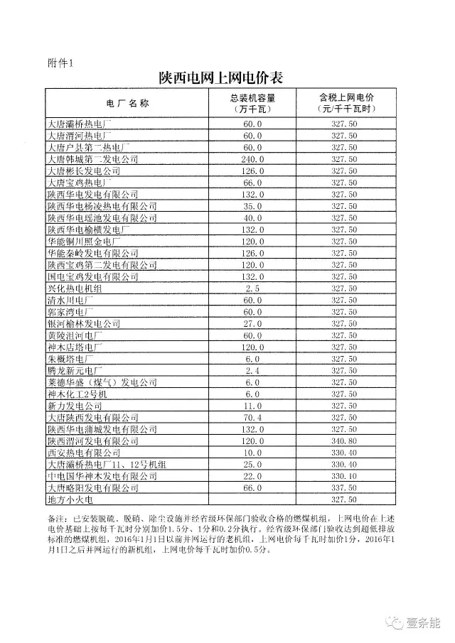 1.陜西電網(wǎng)上網(wǎng)電價(jià)表