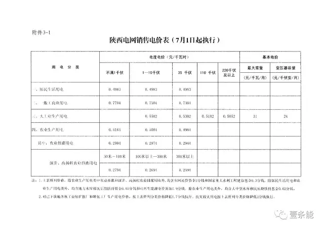 3.陜西電網(wǎng)銷售電價(jià)表(7月1日起執(zhí)行)