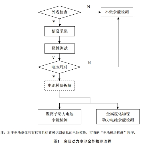 余能是指動(dòng)力電池從電動(dòng)汽車上報(bào)廢后剩余的實(shí)際容量。記者了解到,2015年,《車用動(dòng)力電池回收利用 余能檢測(cè)》(征求意見稿)發(fā)布。當(dāng)時(shí)的征求意見稿中,電動(dòng)汽車用廢舊動(dòng)力電池的余能檢測(cè)遵循下圖所示的作業(yè)流程(特別提醒:下圖所示余能檢測(cè)作業(yè)流程為2015年版征求意見稿中的流程):