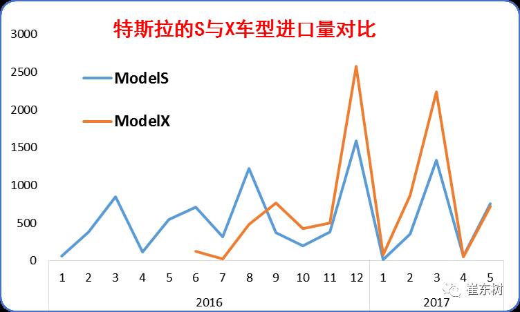 在特斯拉MODEL X推出時(shí),中國市場也是很喜歡特斯拉的SUV類車型,形成16年8月開始的爆發(fā)增長,但市場的零售走勢偏弱,因此17年的4-5月的model X進(jìn)口量大幅減少,X與S的進(jìn)口量拉平,其背后就是17年的X零售不強(qiáng),形成X僅稍高于S的零售局面,中間庫存估計(jì)有2000臺左右。