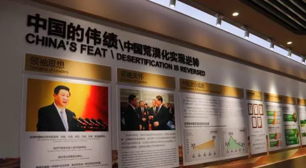 沙漠生態(tài)科技中心(展示中心)通過多媒體和圖文展板等形式,全面、立體地展示了世界荒漠化防治形勢(shì),中國(guó)荒漠化防治成果以及內(nèi)蒙古、鄂爾多斯治沙生態(tài)科技成果;展示了庫(kù)布其的歷史變遷,在庫(kù)布其生態(tài)治沙扶貧的卓越成就,包括種質(zhì)資源、治沙技術(shù)、種植技術(shù)、節(jié)水技術(shù)、生態(tài)修復(fù)技術(shù)等核心技術(shù)以及核心專利發(fā)明、治沙扶貧等內(nèi)容。