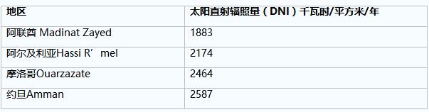 表1:太陽能資源在中東和北非不同地區(qū)的分布(來源:Global Solar Atlas&NREL Solar PACES)