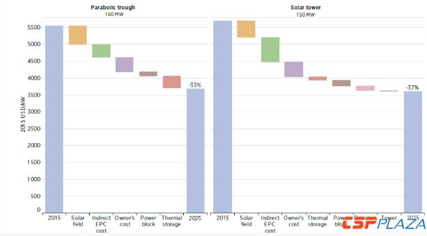 MichaelTaylor:這個問題需要細(xì)分,針對槽式光熱發(fā)電項目和塔式光熱發(fā)電項目會有所不同。我們所做的一系列分析研究表明在項目的各個環(huán)節(jié)都有降低成本的可能性。我們預(yù)計到2025年,建設(shè)總成本有望下降33%-37%,平準(zhǔn)化電力成本則可能降幅更大一些,可達(dá)37%-43%。