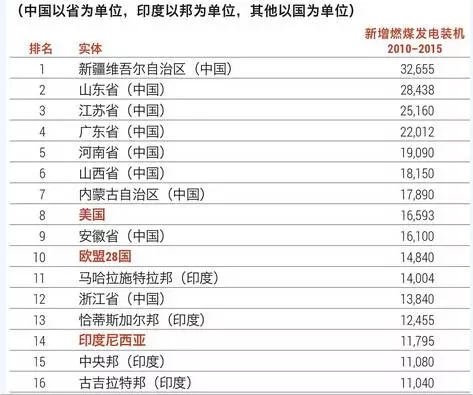 全球已投產(chǎn)燃煤發(fā)電裝機(jī)排行榜2010—2015(兆瓦)