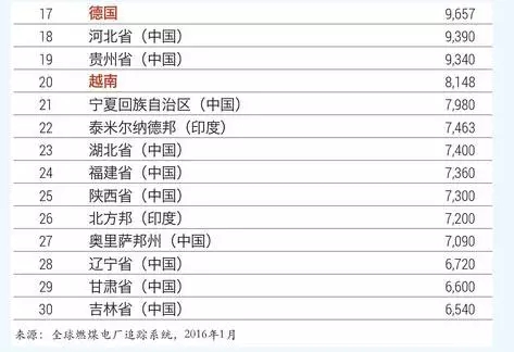 從下表我們可以看到,自2010年起,前30個(gè)燃煤電廠的建設(shè)單位中,有25個(gè)是中國(guó)的省區(qū)和印度的邦。中國(guó)的省和自治區(qū)占據(jù)了前7位。相關(guān)數(shù)據(jù)還顯示,2010年以來,全球有33個(gè)國(guó)家興建了燃煤電廠,但是只有8個(gè)國(guó)家的新增裝機(jī)容量超過了2000MW,其中中國(guó)和印度兩個(gè)國(guó)家的新增裝機(jī)占了85%。