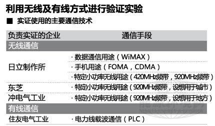 日立制作所還利用使用高速互聯(lián)網(wǎng)的“WiMAX”及NTT DoCoMo的“FOMA”、KDDI的“CDMA”等手機(jī)無線方式進(jìn)行驗(yàn)證。另外,還利用無需無線知識(shí)及使用許可即可加以利用的“特定小功率無線”頻帶420MHz及920MHz進(jìn)行驗(yàn)證。