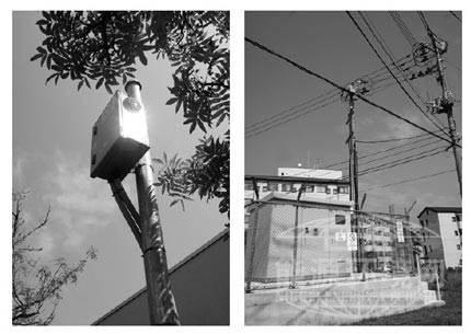 左側(cè)是日立制作所進(jìn)行實(shí)際驗(yàn)證的特定小功率無線通信主機(jī)。設(shè)置于六所村尾駁地區(qū)中心服務(wù)器機(jī)房的室外。右側(cè)設(shè)置有住友電氣工業(yè)進(jìn)行實(shí)證的電力線載波通信主機(jī)。從這里通過電力線發(fā)送控制信號(hào)。