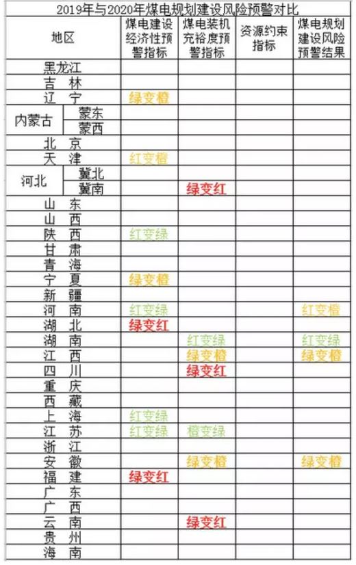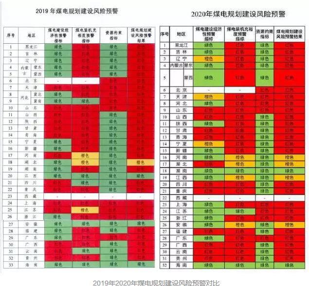 “資源約束指標(biāo)基于各省(區(qū)、市)的大氣污染物排放、水資源量、煤炭消費(fèi)總量以及其他相關(guān)資源情況,分為紅色、綠色兩個(gè)等級(jí)。對(duì)于大氣污染形勢(shì)嚴(yán)峻、水資源量不足、煤炭消費(fèi)總量亟需控制,或者存在其它資源約束煤電規(guī)劃建設(shè)的,資源約束指標(biāo)為紅色預(yù)警;其余為綠色。”