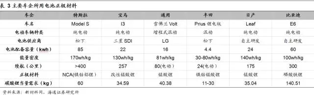 可知其中1 克鋰鈷鎳鋁三元正極材料需要0.423克碳酸鋰。則生產(chǎn)一節(jié)18650 NCA三元電池正極材料需要15×0.423 = 6.345g碳酸鋰。一輛Model S使用了7104節(jié)18650電池,折合碳酸鋰當(dāng)量=7104×6.345g=45.1kg,再加上電解液六氟磷酸鋰對碳酸鋰的需求和工業(yè)耗損,預(yù)計一輛Model S對碳酸鋰當(dāng)量需求在60kg左右,折合耗用量為0.73 kg/kWh。