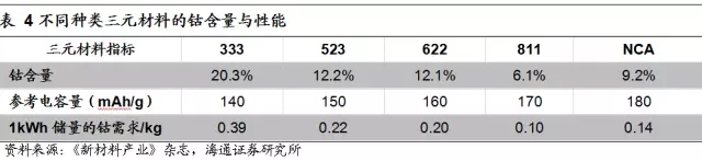 通過引入Ni含量可提高材料的容量,而松下NRC18650B正是提高了Ni含量(摩爾分數(shù)80%)從而使電池從原來的2.9Ah提高到了3.3Ah左右,能量密度大大提升。同時受益于三元協(xié)同效應(yīng),NCA正極材料綜合了LiNiO2和LiCoO2諸多優(yōu)點,性能比使用單一材料優(yōu)越。而且,該材料用鈷量較少,成本較低。